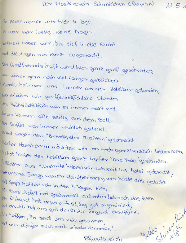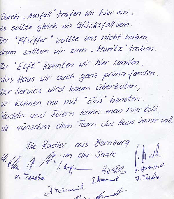 Gästebuch Auszug Hotel & Restaurant